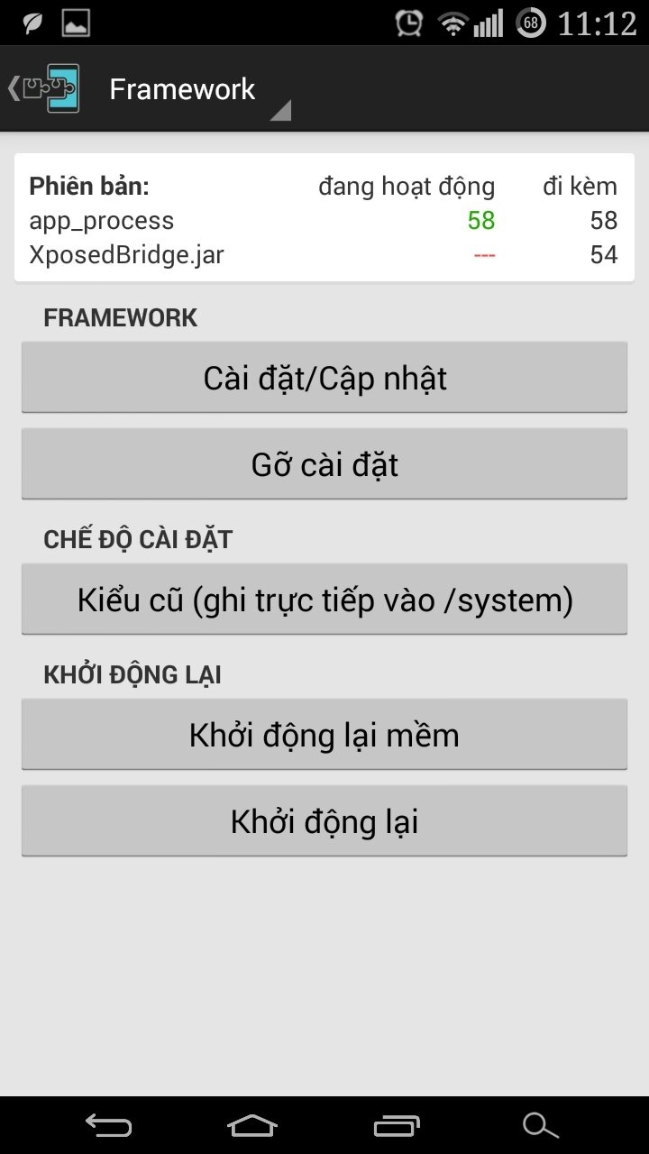 Tức là Bác ko cài thêm xposed nào hết cả, xong vào titanium search xposed, rồi wipe data nó đi. Lúc đó cập nhật modul các soft cần xposed nó sẽ kích hoạt đc.