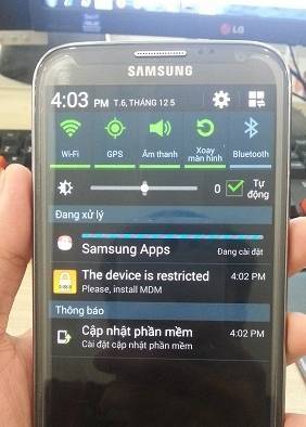 Nhận Fix lỗi The Devices is restricted - Please, instal MDM cho các dòng samsung chạy android như: samsung galaxy s3 i9300 E210 s4 i9500 i9505 s5 g900 các dòng samsung galaxy note 1 N7100 E160 note 2 n7100 n7105 E250 Note 3 N900 N9005 Note 3 Docomo Note 2 AU... Hiện tượng khi bị lỗi này sẽ ko vào được camera xem thư viện báo lỗi "chính sách bảo mật bị hạn chế" còn có thể không bật được bluetooth nữa. Đoàn Up Rom 70k - 01667.67.1932 https://www.facebook.com/upromandroidiphone