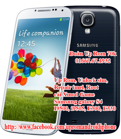 Nhận Up Rom cài tiếng việt nâng cấp android 5.0 lollipop chính thức cho các dòng Samsung Galaxy S4 i9500, I9505, E300 E330 L S K hàn quốc Nhận fix imei, repair imei lấy lại imei cho các máy Samsung Galaxy S4 i9500, I9505, E300 E330 L S K hàn quốc up rom lỗi, hạ rom từ 5.0 về 4.4.2 kitkat mất imei Nhận Unlock sim, mở mạng up rom tiếng việt cho Samsung Galaxy S4 i9500, I9505 xách tay nước ngoài, hàng nhảy từ bắc ninh tại hà nội Nhận Root máy cài xmod game đánh thử hack cheat game clash of clan coc cho Samsung Galaxy S4 i9500, I9505, E300 E330 L S K hàn quốc tại hà nội Giá dịch vụ: + Root máy cài Xmod game: 50k + Up rom, cài tiếng việt: 70k + Repair imei, unbrick cứu treo logo: 100k + Unlock sim mở mạng: 200k Đoàn Up ROm 70k - 01667.67.1932 https://www.facebook.com/upromandroidiphone