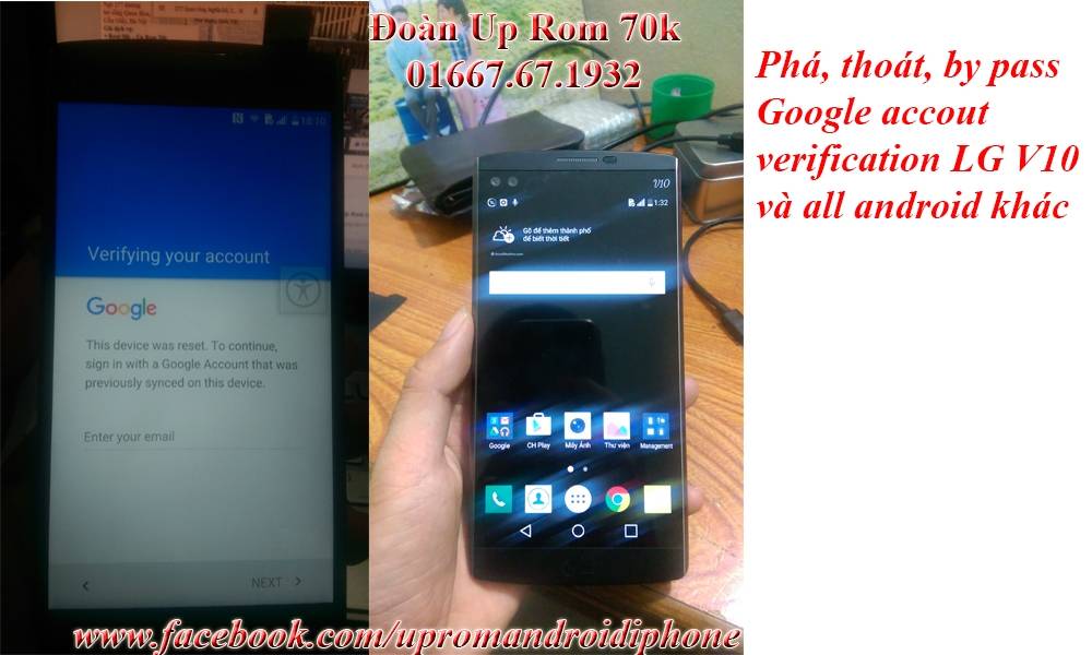 Xóa, thoát ,Remove by pass Google Accounts verification (xác minh tài khoản google của bạn) fix FRP Lock ( Factory Reset Protection lock) LG V10 H901 VS990 H900 H961N H968 H960 F600slk t-mobile at&t verizon và tất cả các dòng android khác như Samsung, LG, HTC, Oppo, Sony... + LG V10 H901 VS990 H900 H961N H968 H960 F600slk t-mobile at&t verizon... chạy hệ điều hành Android 5.1.1 nên được cung cấp chế độ bảo mật "verify your account" cho thiết bị sau khi bị hard reset hay nâng cấp firmware, cài đặt chương trình 1 cách không hợp lệ...nó sẽ đòi xác thực tài khoản Gmail trước đó trong máy. Dịch vụ bên e fix lỗi này với giá cả hợp lý (100-300k tuỳ đời máy) khách khàng có thể đợi và lấy ngay. Giá dịch vụ: 100-300k tùy đời máy Đoàn Up Rom 70k - 01667.67.1932 (Call, SMS, Viber, Zalo) Skype: doanuprom Facebook: https://www.facebook.com/upromandroidiphone tag: Xóa, thoát, by pass, remove, unlock sim mở mạng google accounts lg v10 h900 at&t Xóa, thoát, by pass, remove, unlock sim mở mạng Verifying your accout lg v10 h900 at&t Xóa, thoát, by pass, remove, unlock sim mở mạng google accounts lg v10 h901 t-mobile Xóa, thoát, by pass, remove, unlock sim mở mạng Verifying your accout lg v10 h901 t-mobile Xóa, thoát, by pass, remove, unlock sim mở mạng google accounts lg v10 vs990 verizon Xóa, thoát, by pass, remove, unlock sim mở mạng Verifying your accout lg v10 vs990 verizon Xóa, thoát, by pass, remove, unlock sim mở mạng Verifying your accout lg v10 F600 hàn quốc korea Xóa, thoát, by pass, remove, unlock sim mở mạng Verifying your accout LG G4 - REMOVE ACOUNT GOOGLE G4, F500LSK, H811, H810, H815, LS991, By pass account google lg g4 at&t h810 thành công Phá account google lg g4 at&t h810 lấy ngay Xóa bỏ account google lg g4 at&t h810 giá tốt Xóa tài khoản google lg g4 h810 at&t Vượt xác thực Account Google LG G4 at&t h810 ok Unlock xác thực Account Google LG G4 F500S/L/K hàn quốc Mở khóa bỏ khóa xác thực Account Google LG G4 F500S/L/K hàn quốc Remove Account Google LG G4 F500S/L/K hàn quốc Gỡ bỏ Account Google LG G4 F500S/L/K hàn quốc By pass account google lg g4 F500S/L/K hàn quốc By pass tài khoản google lg g4 h815 ls991 sprint Xóa xác thực tài khoản google lg g4 h815 ls991 sprint By pass tài khoản google lg g4 h815 ls991 sprint Gỡ bỏ xác thực tài khoản google lg g4 h815 ls991 sprint Thoát Xóa Remove google account Lg LG Flex 2 F510K Korea Verifying your account (Lock Google FRP) Thoát Xóa Remove google account Lg LG Flex 2 F510S Korea Verifying your account (Lock Google FRP) Thoát Xóa Remove google account Lg LG Flex 2 LS996 Sprint – USA Verifying your account (Lock Google FRP) Bypass Google Accounts Lg LG Flex 2 T-Mobile Bypass Google Accounts Lg LG Flex 2 AT&T Bypass Google Accounts Lg LG Flex 2 Verizon Bypass Google Accounts Lg LG Flex 2 hàn quốc