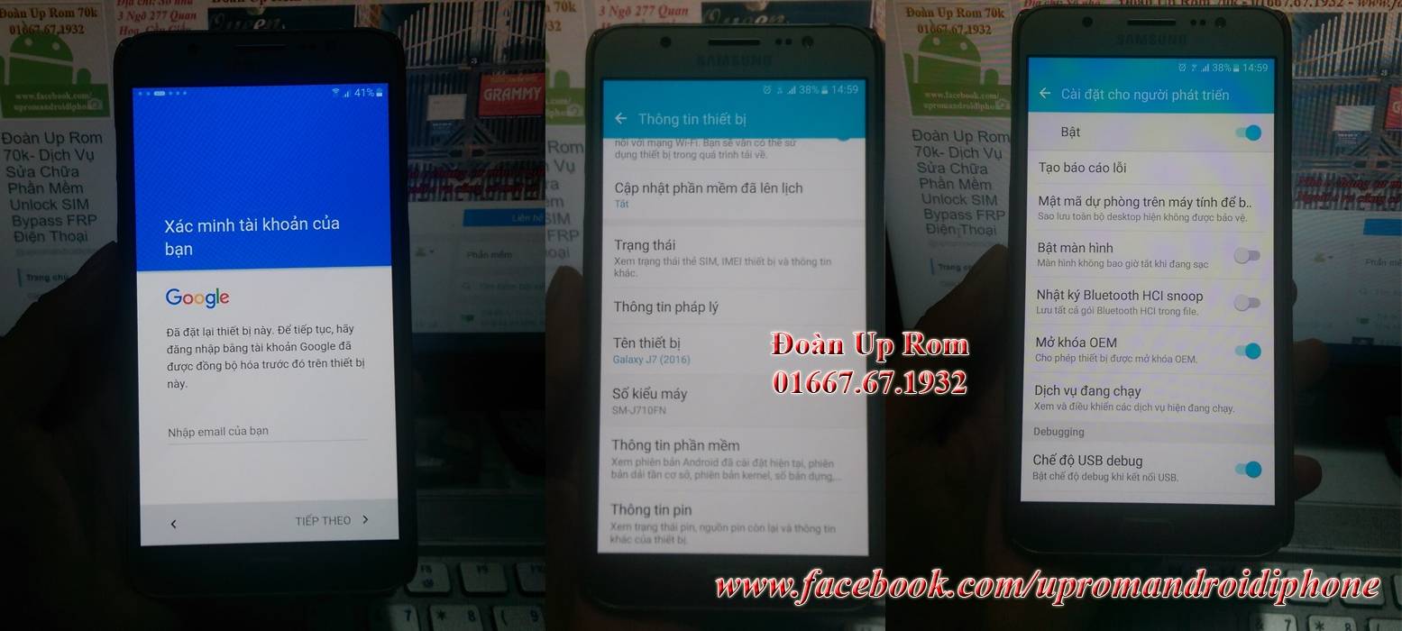 Xóa xác minh tài khoản của bạn tất cả các dòng Android, bypass frp lock huawei, Unlock sim Oppo Huawei RIO G7 Plus G8, Mobell nova P2 xóa xác minh tài khoản của bạn, remove frp lock google accout verify lấy ngay. Xóa tài khoản cloud google cũ khi reset cho các dòng android... Đoàn Up Rom 70k - 01667.67.1932 (Call, SMS, Viber, Zalo) Skype: doanuprom Facebook: https://www.facebook.com/upromandroidiphone Samsung galaxy tab s2 hàn quốc sm-t715n0 lỗi bảo mật không cho sử dụng máy ảnh fix ok lấy ngay Fix lỗi devices management trên các máy samsung xách tay. Khi bị lỗi này máy quý khách sẽ không mở được máy ảnh, Bluetooth, không nhận máy tính để copy dữ liệu không bật được usb debug tùy chọn nhà phát triển. Bên e fix xong mọi thứ dùng bình thường và fix vĩnh viễn ko bị lỗi lại nữa. Sau khi fix mọi thứ ok: Sau khi fix mọi thứ ok: Unlock sim Oppo xách tay Đài Loan ok