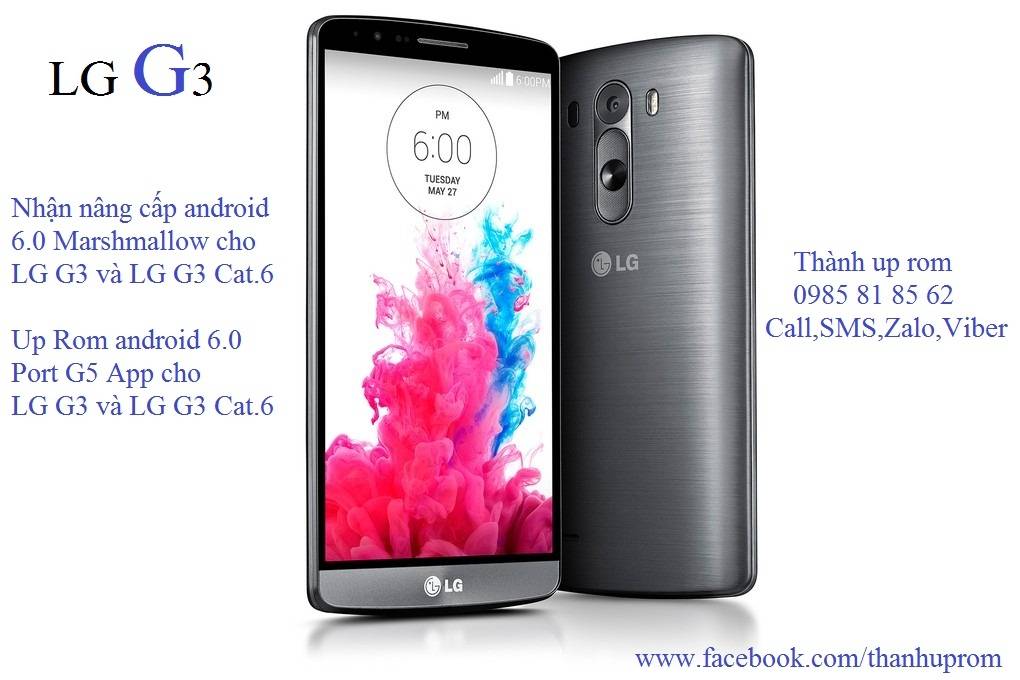 Liên hệ: Thành up rom - 0985 81 85 62 (call, sms, zalo, viber) https://www.facebook.com/thanhuprom - Nhận nâng cấp up rom gốc, root, up rom cook Android 5.0.2 Lollipop, 6.0 Marshmallow tiếng việt đầy đủ cho LG G3: G3 D850, G3 D851, G3 D852, G3 D855, G3 F400S, G3 F400K, G3 F400L, G3 LS990 Sprint, G3 US990, G3 VS985 Verizon tại Hà Nội. - Nhận up rom cook android 6.0 Port G5 App tiếng việt đầy đủ cho LG G3: G3 D850, G3 D851, G3 D852, G3 D855, G3 F400S, G3 F400K, G3 F400L, G3 LS990 Sprint, G3 US990, G3 VS985 Verizon tại Hà Nội. - Nhận nâng cấp up rom gốc, root, up rom cook Android 5.0.1 Lollipop, 6.0 Marshmallow có tiếng việt đầy đủ cho LG G3 Cat.6: F460S, F460K, F460L tại Hà Nội. - Nhận up rom cook android 6.0 Port G5 App có tiếng việt đầy đủ cho LG G3 Cat.6: F460S, F460K, F460L tại Hà Nội. - Nhận up rom 4.4.2 Kitkat, 5.0.1, 5.0.2 Lollipop, 6.0.1 Marshmallow tiếng việt ổn định, fix treo logo LG bootloop, root máy, xóa app thừa, cài xmodgame, cài recovery cho LG G3, LG G3 Cat.6 tại Hà Nội.