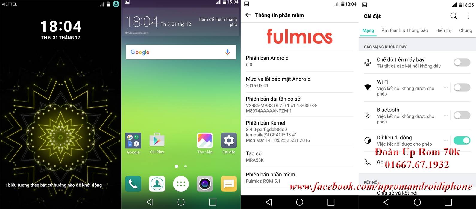 + Nhận up rom G5 cho các dòng LG G3 tất cả các phiên bản (D855, D851, D850, F400, LS990, VS985....), LG G3 Cat 6 F460L F460K F460S + Nhận Up rom Fulmics ROM, Tizen Rom cho các dòng LG G3 + Nhận cứu treo logo, unbrick, cứu boot cứu lỗi up rom không lên nguồn đen xì màn hình do up sai rom up nhầm recovery dẫn đến tình trạng hard brick không bật máy lên được cho các tất cả các dòng LG G GPro GPro 2 G2 G3 G3 cat 6.... Giá up rom: 70k/1 máy. Cứu treo logo Unbrick cứu boot: 100k trở lên. Ae ở xa có thể trả tiền qua ngân hàng với giá cao hơn làm trực tiếp một chút và tiến hành làm qua teamviewr. Liên hệ: Đoàn Up Rom 70k - 01667.67.1932 (Call, SMS, Viber, Zalo) Skype: doanuprom Facebook: https://www.facebook.com/upromandroidiphone