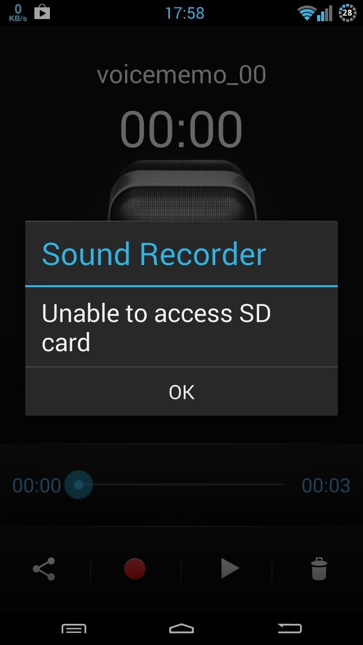 thông báo rõ ràng là không kết nối được với thẻ SD mà :-? bạn kiểm tra xem có cài phần mềm quản lý nào block nó truy cập không. Sang tab setting xem location là internal hay external