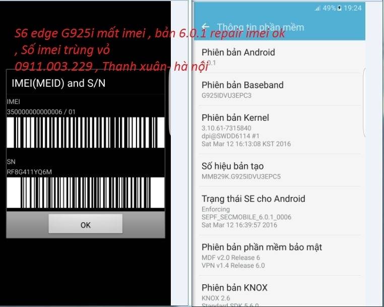 THÊM MỘT EM , Samsung S6 edge G925i KHÁCH UP nhầm rom, IMEI VỀ 35000000000000006 Lỗi chỉ cuộc gọi SOS , ko gọi điện và sử dụng được mạng 3g Đang chay android 6.0.1 Làm luôn trên bản đó, IMEI sau khi fix trùng tem máy. Mạng 2g, 3g căng đét.