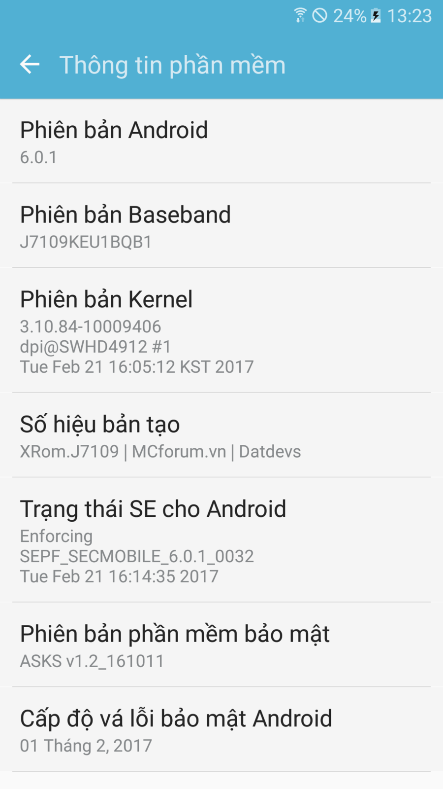 Android 7 cho J7109 với tên mã J7109KES1BRA1 ??? Hiện tại J7109 được cập nhật OTA phiên bản mới 1BRA1 nhưng chưa biết là android 7 hay 6, nhiều khả năng là android 7, anh em nào đang sử dụng Rom stock hoặc muốn cập nhật phiên bản 1BRA1 thì tải rom stock mới nhất về r Update qua OTA. Mình sẽ chờ có phiên bản hoàn chỉnh được cập nhật trên samsung-update sẽ build bản ổn định XRom ver new này cho anh em. Xin cảm ơn ! À quên hiện tại là mình không có máy, anh em nào muốn build mà ở SG thì có thể tìm đến liên hệ mình, build trong 1 buổi rồi trả máy. không cần đợi bản Stock trên S-update.